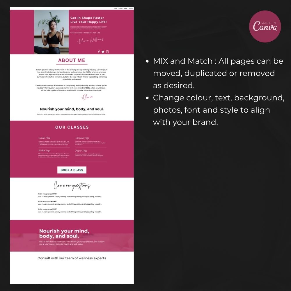 • 1 Yoga Teacher Studio Canva Website Template, along with photos included in the demo website.