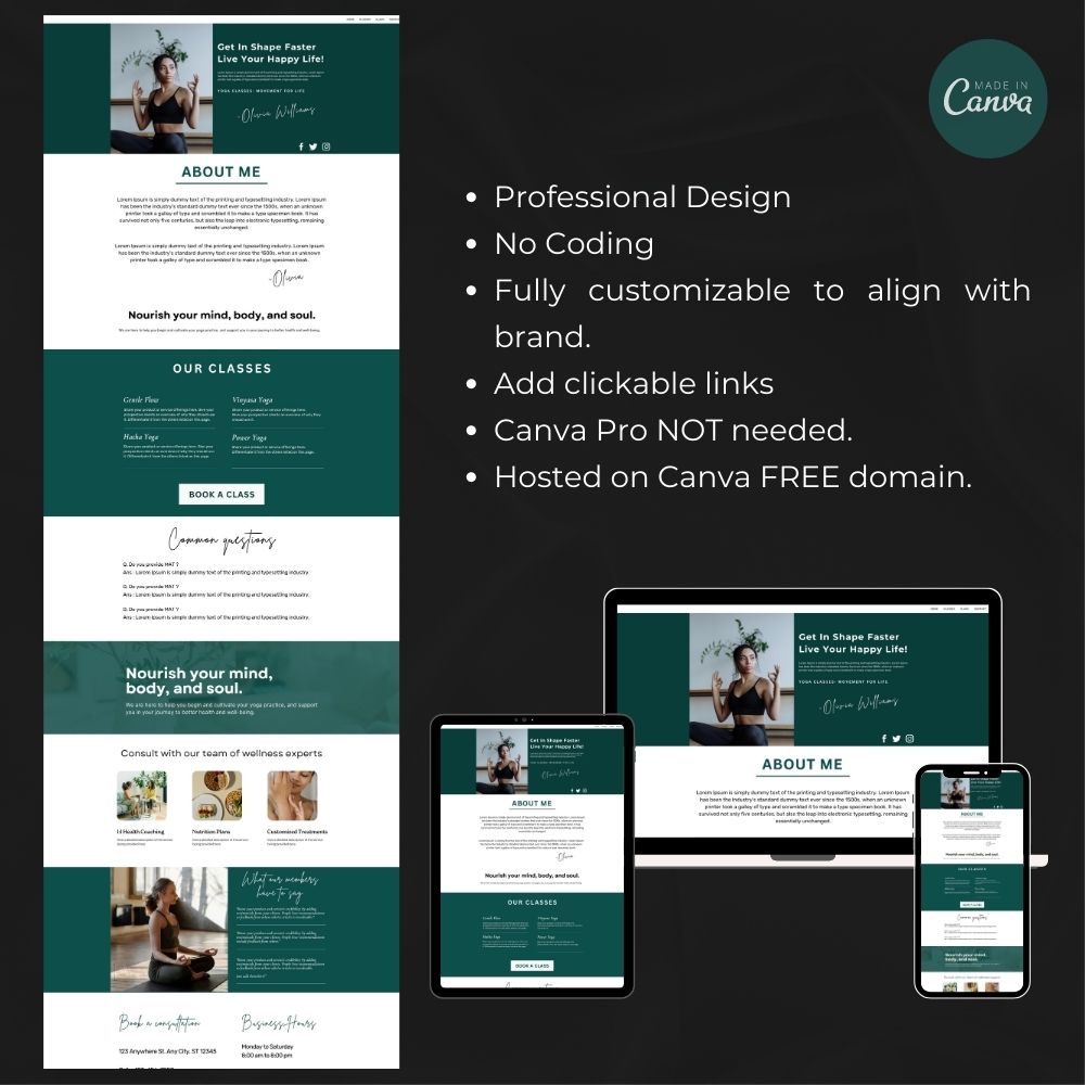 - The identical website you see in the live demo will be what you get! You will need a FREE Canva account to access, edit and host your website.